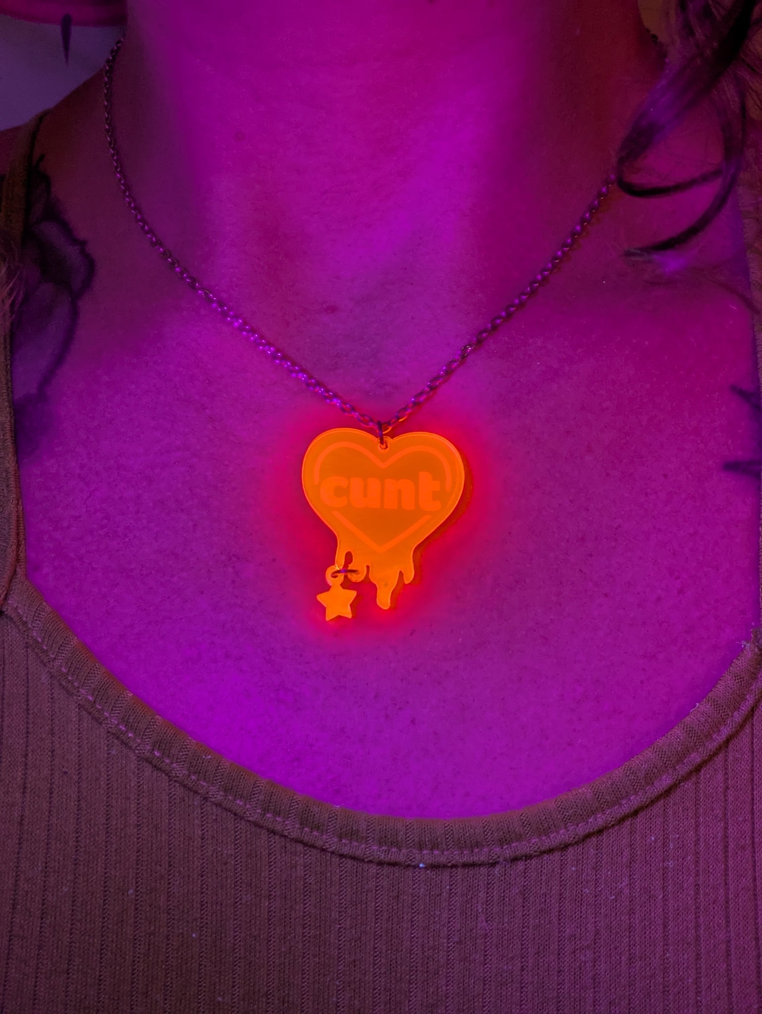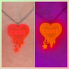 Custom VINCA blacklight heart necklace, glows as much as you do